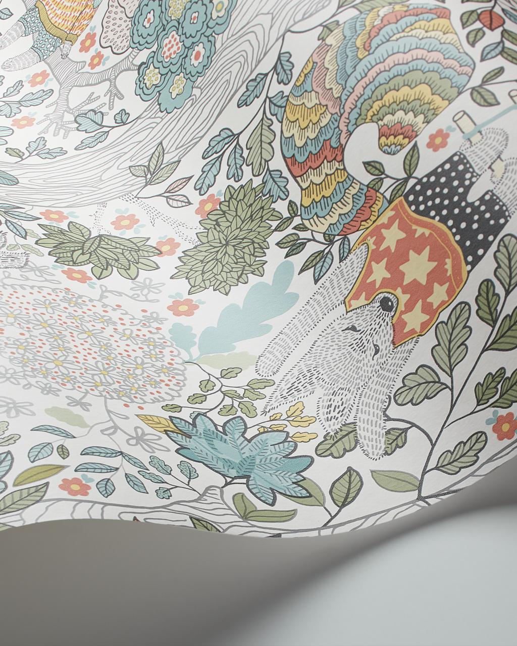 gathering acorns. The contrasts, details and vibrant colors get the imagination going in this narrative pattern, created in Boråstapeter's Design Studio by Amanda Nordblad.