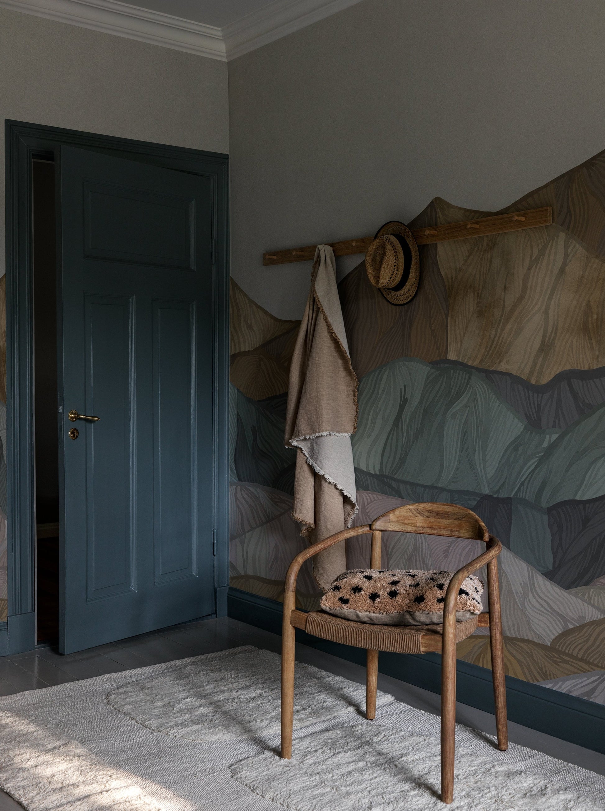 Colored Mountain, as the name suggests, depicts an epic mountain range in ochre, dusty pink and moss green against an egg white backdrop. The beautiful interplay between the different-colored mountain ridges gives the wallpaper depth and texture and brings to mind faraway places.