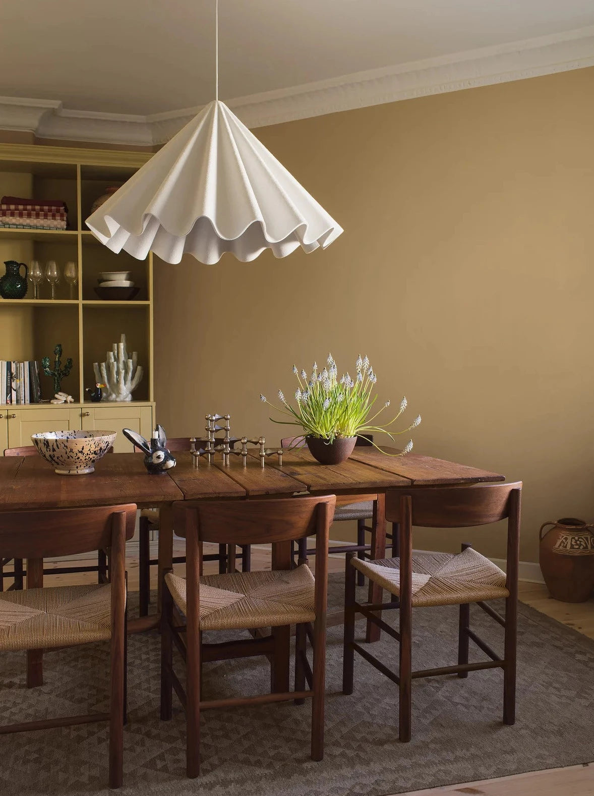 Our delightful Desert Sand wallpaper is colored in a classic yellow tone and can be used on all four walls or as a feature wall. It pairs wonderfully well with both oiled oak and white-glazed furniture and is perfect for creating cosy and inviting living spaces.