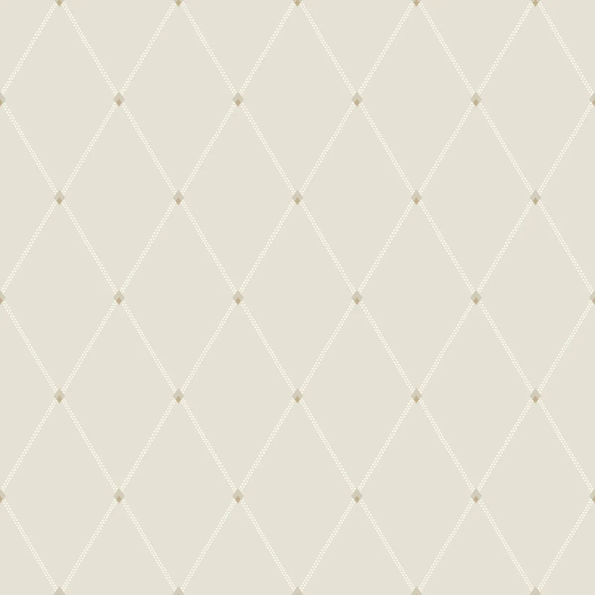 Colored in warm and welcoming hues of creamy white, beige and gold set on a porcelain white background, our Fredrik wallpaper in a collagraph print is neat, neutral and nonchalant. Featuring a hand-drawn trellis pattern made up of diamonds of all shapes and sizes, it creates a feeling of space and solid colour calm with a splash of decorative charm.