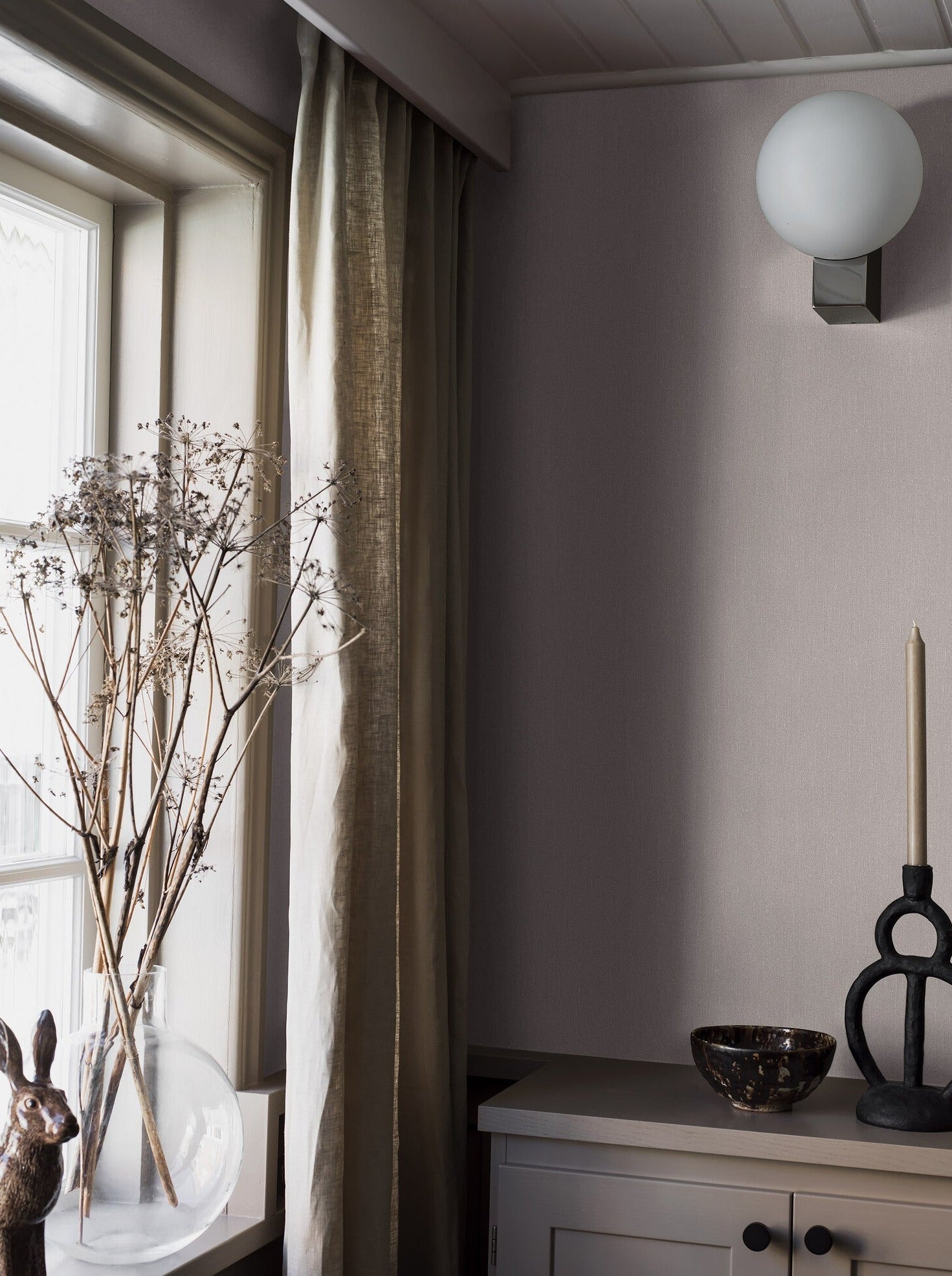 Our gorgeous Heather wallpaper is softly colored in heather with a light grey tint. The wallpaper’s beautiful linen structure has a still shimmer and creates a warm and homely feeling in rooms.