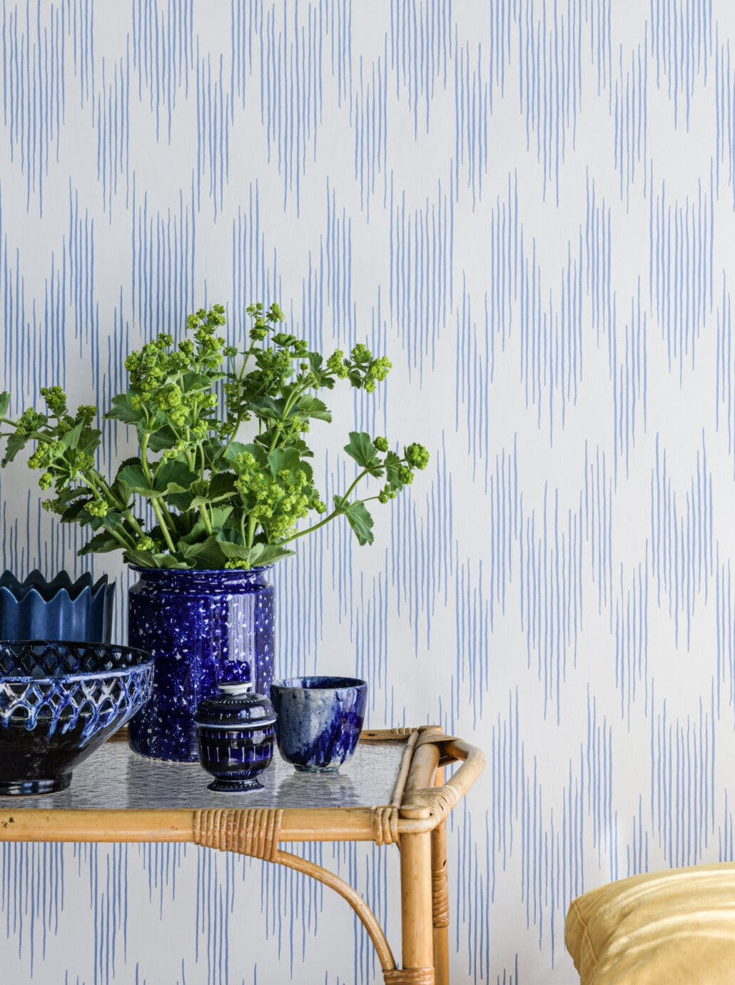 The textile dyeing technique ikat, demonstrating blurry lines as a key characteristic, inspires Daniel Långelid in his wallpaper pattern with the same name, Ikat.