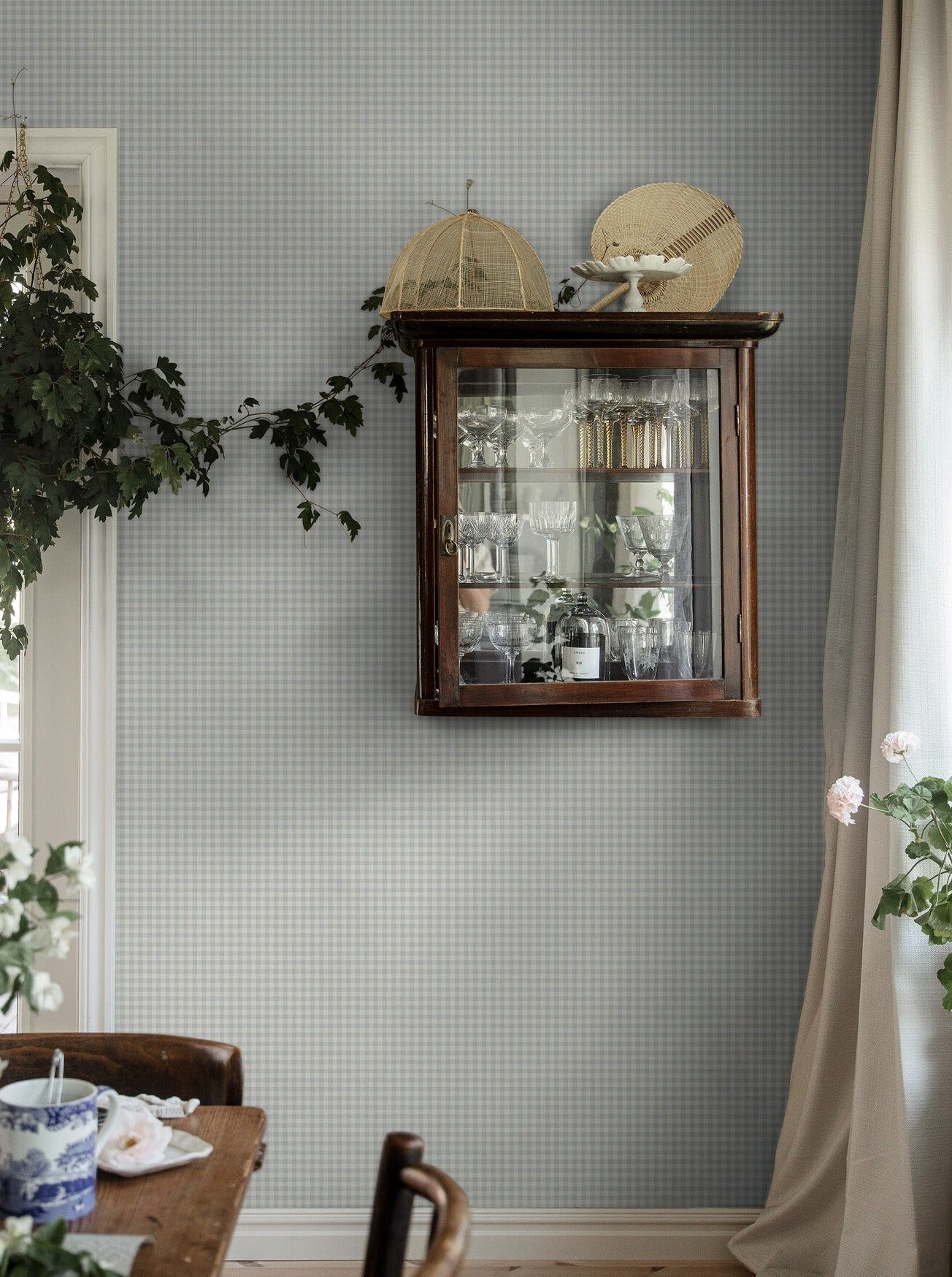 Softly colored in light blue and off-white, Picnic Check has a classic check pattern that is perfect for modern homes. Joyful and comforting, the wallpaper is printed on our popular linen base with a subtle tactile structure that enhances the surrounding space without overwhelming it.