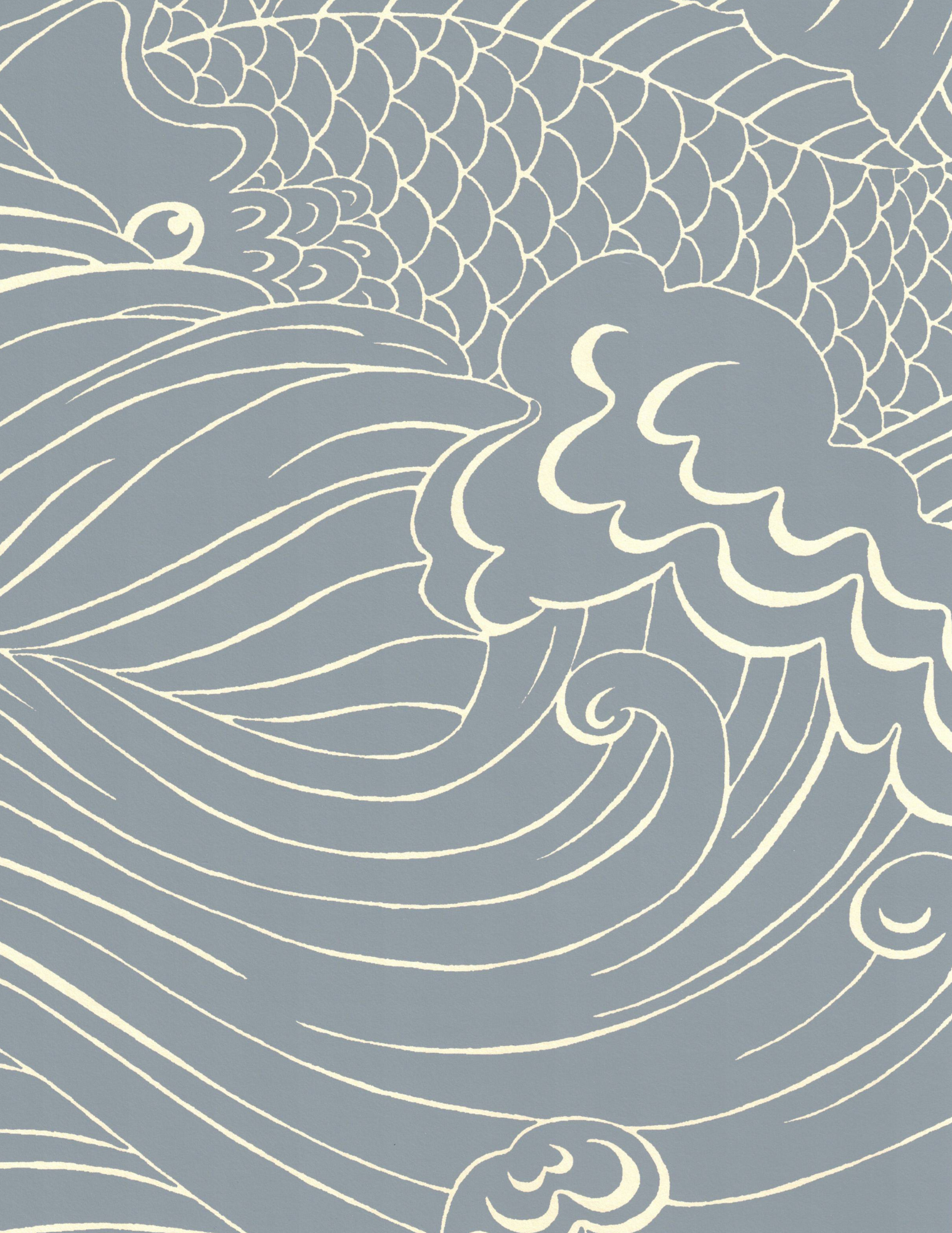 Wallpaper with inspiration from old woodcut techniques, Emma von Brömssen’s seemingly simple design Plenty More Fish unveils an intriguing play with lines where fish hide in a wavy sea.