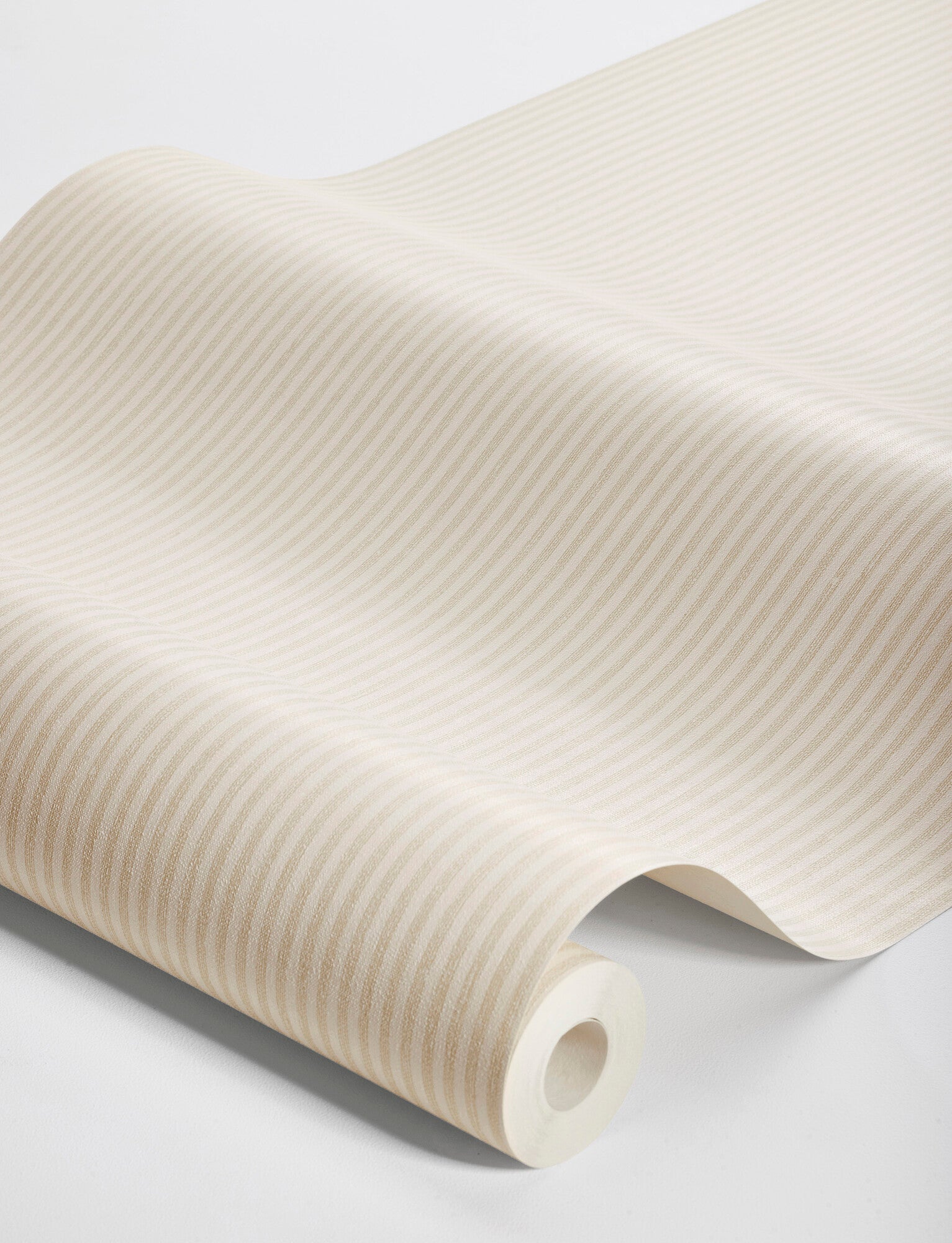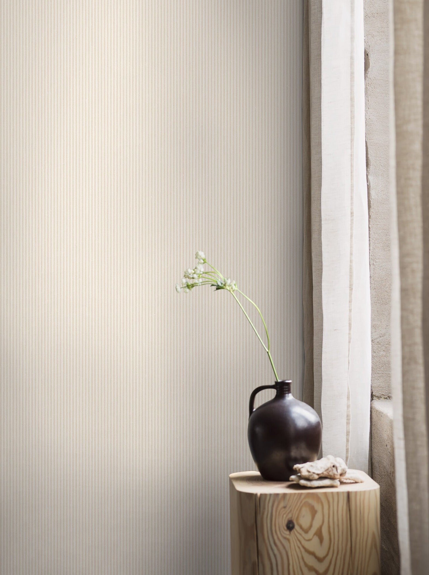 With its fresh narrow stripe pattern in a light, golden beige and crisp off-white color setting, our Polka Stripe wallpaper beautifully blends classic and contemporary elements. It is printed on our beloved linen base, which has a subtle linen texture which adds a soft and refined character to rooms.