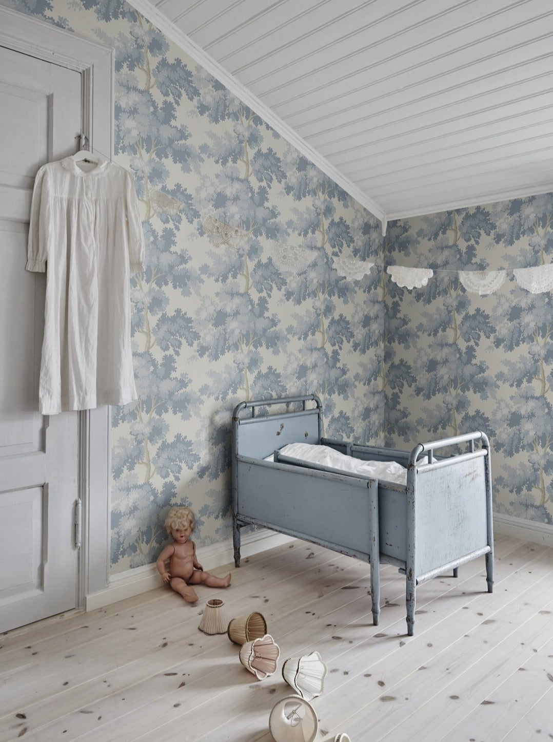 Raphael is one of our most popular wallpapers. The pattern gives you treetops in a wide range of color combinations. The inspiration for this pattern was partly taken from Central Park in New York – a leafy park surrounded by glass-and-concrete skyscrapers and a beautiful contrast to the bustling city. The pattern is also inspired by antique tapestries, where stylized leaves are often shown in fields of light and shade.