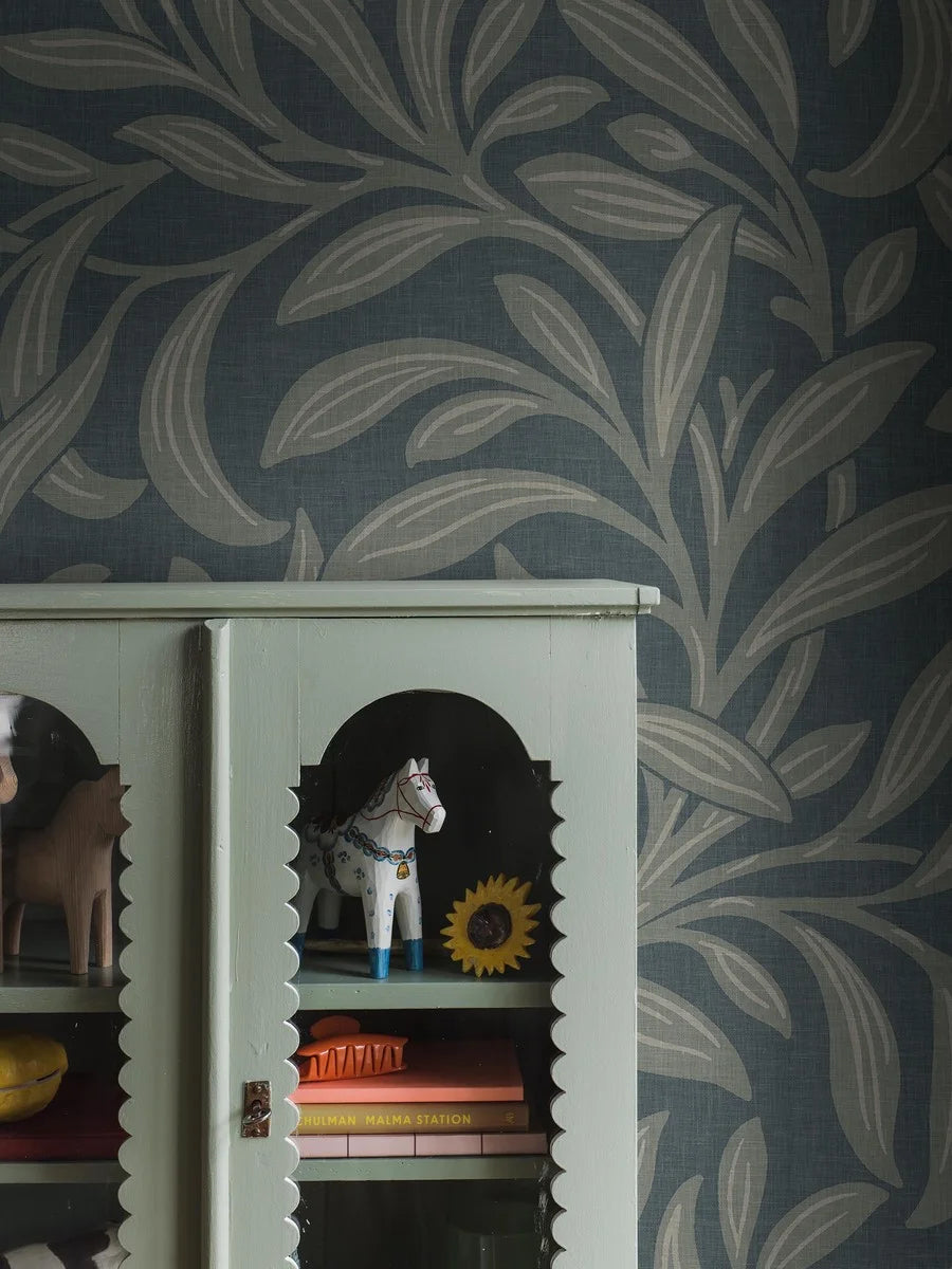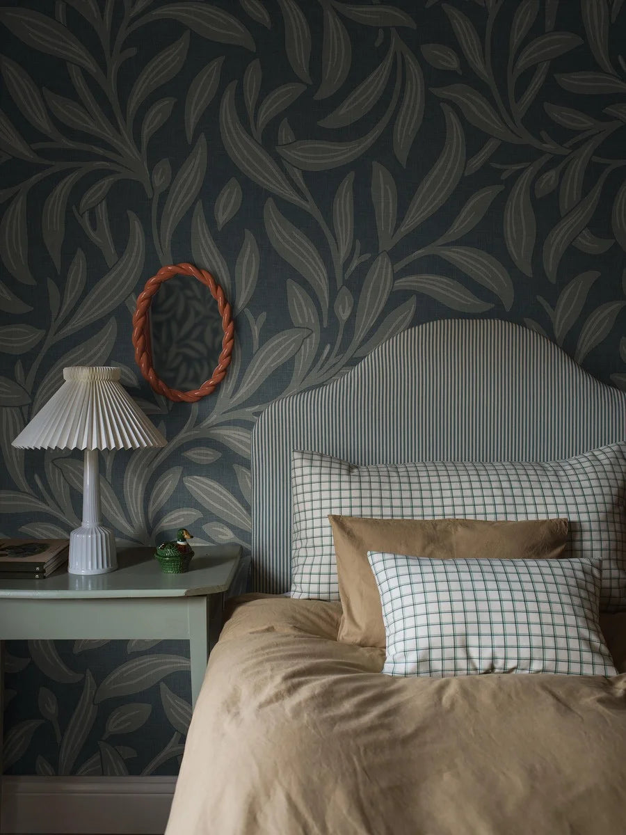 Vintergröna Grand’s tightly winding foliage creates a calm, embracing impression on your wall, enveloping the entire room in a harmonious feel. This Arts & Crafts-inspired motif is digitally printed on an extra-large scale and fully custom fit to your wall.
