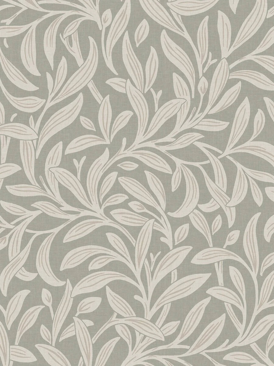 Here, Vintergröna Grand features leaves in linen beige and muted terracotta on a soft gray-green background.